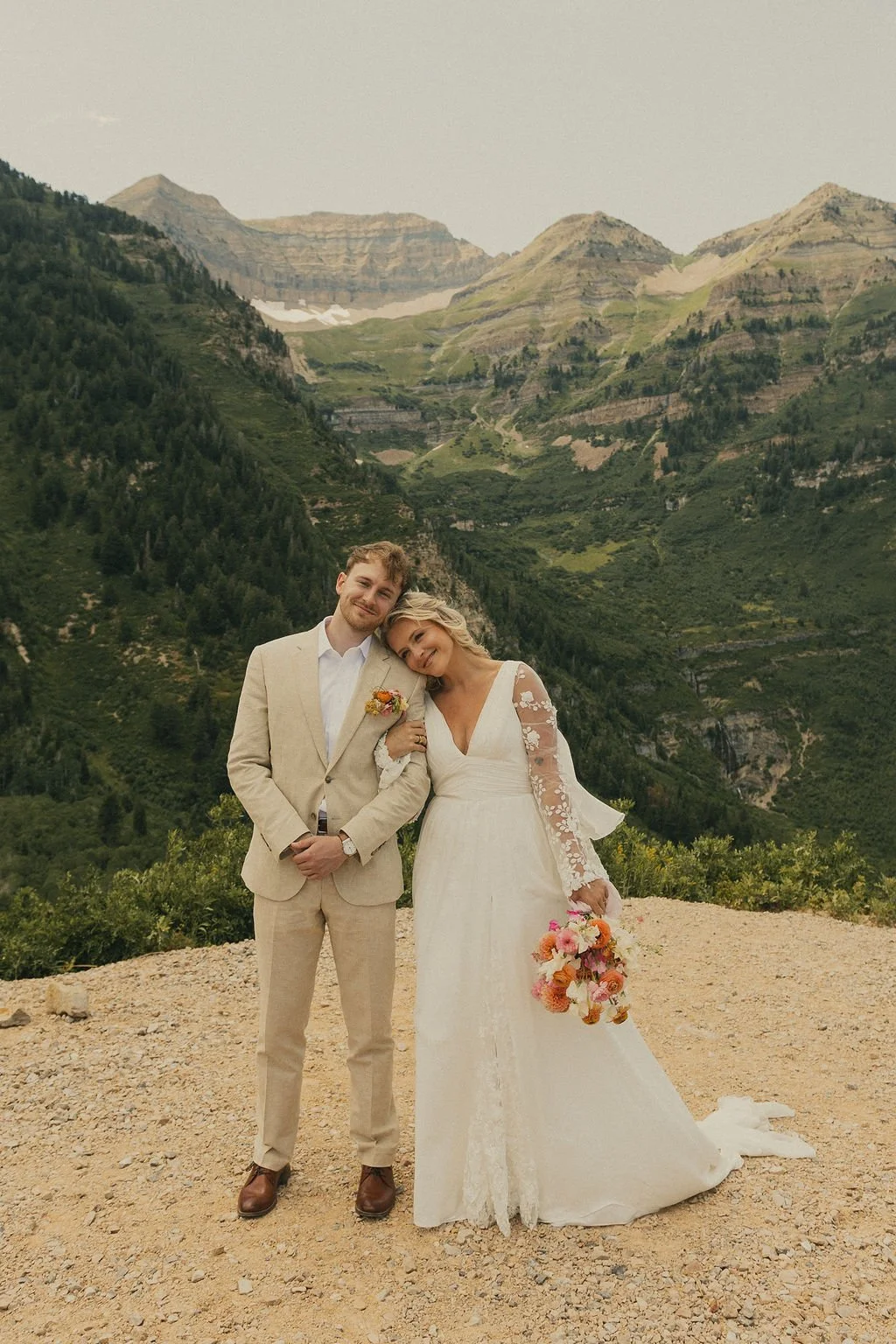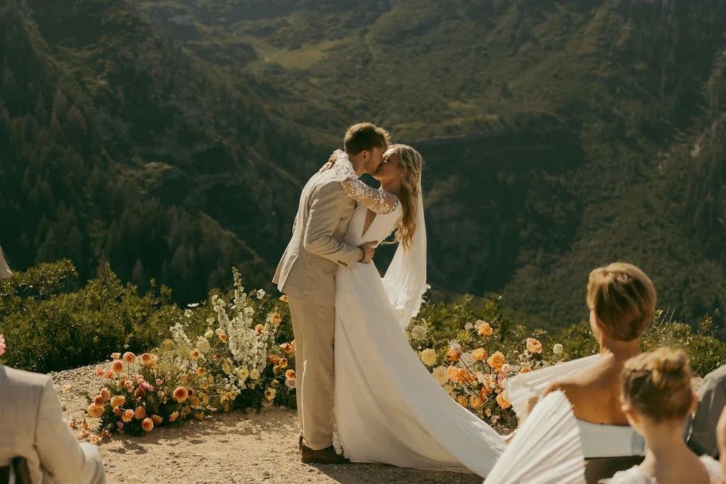 This summer, Kyra said “I do” in the breathtaking Utah mountains, surrounded by sweeping views, soft light and the people she loves most. For a setting that beautiful, her custom wedding dress needed to feel effortless, elevated and completely her.